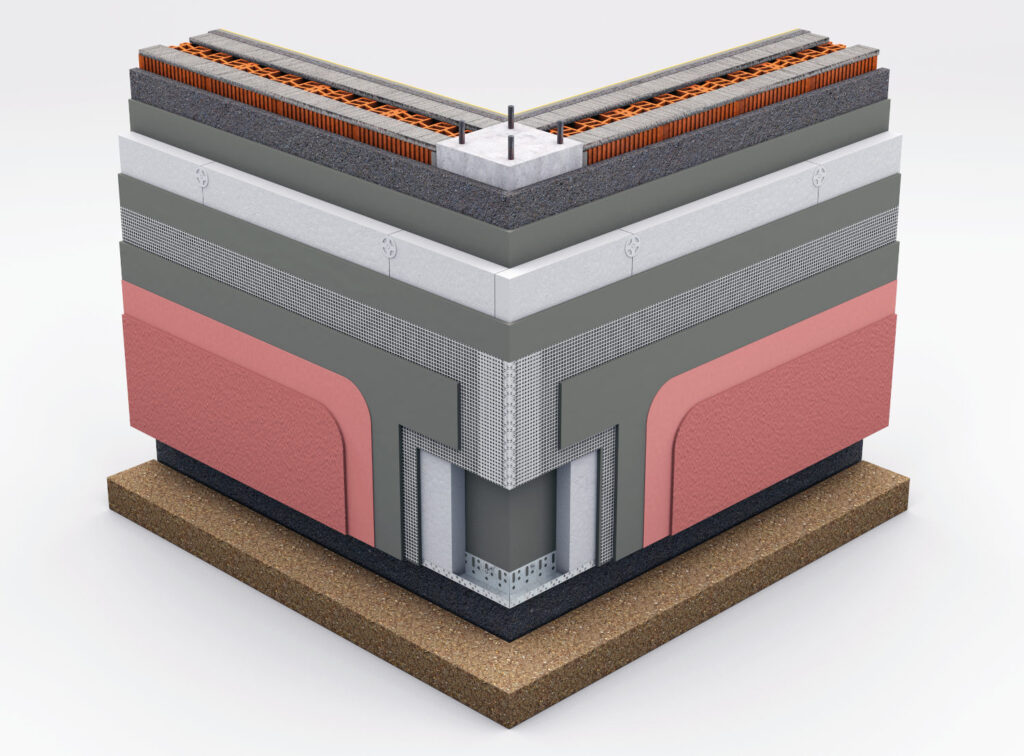 Este sistema é constituído por várias camadas, massa de colagem, placa isolante, rede, primário e acabamento, que juntos agem como uma barreira impenetrável, impedindo trocas de energia entre o exterior e o interior.